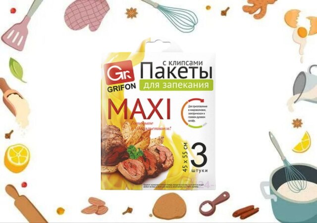 ПАКЕТЫ для запекания универсальные Grifon MAXI 450*550мм 3шт
