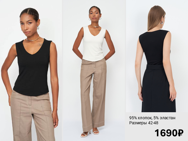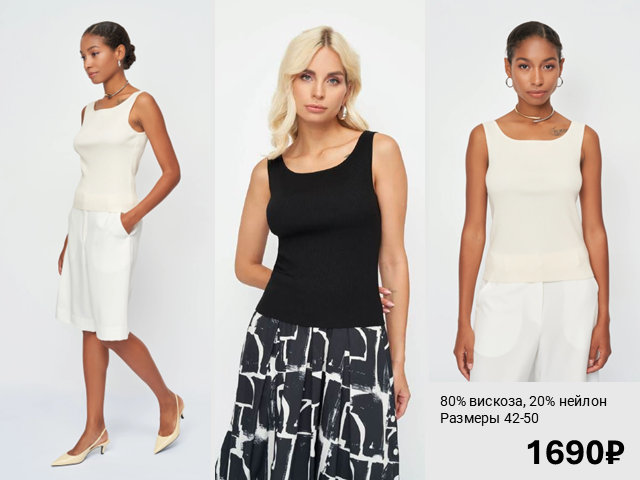 Коллекция расходится на две линейки: стандартную - с 42-50 и plus size - до 56 размера.