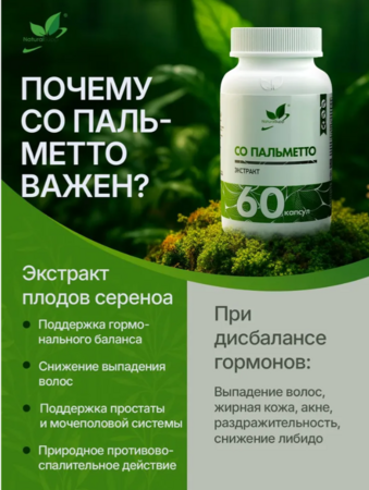 За счет своих антибактериальных и противовоспалительных свойств, Пальма Сереноа способствует нормализации работы мочевыделительной системы, повышению тонуса организма и укреплению иммунитета после перенесенных заболеваний, а также повышению физической и психической активности человека.