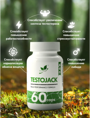 Тестоджек - авторский уникальный комплекс экстрактов, предназначенный для поддержания мужского здоровья, либидо и жизненного тонуса. Травы, входящие в состав направлены на нормализацию гормонального фона и улучшение общего самочувствия