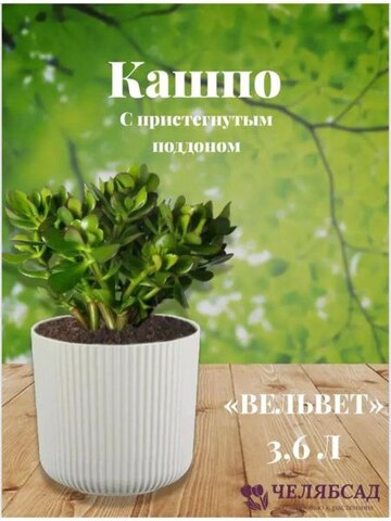 Кашпо ВЕЛЬВЕТ D180мм 3,6л с пристегнутым поддоном Белый ротанг