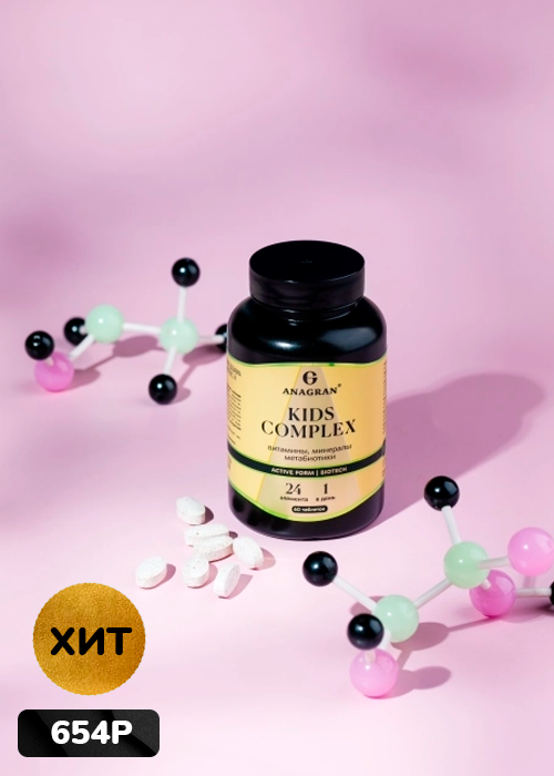 Уникальный витаминно-минеральный комплекс в удобной для приема форме жевательной таблетки, создан специально для детей с 3-ех лет. Содержит 13 витаминов, 5 минералов, метабиотики и пищевые волокна.