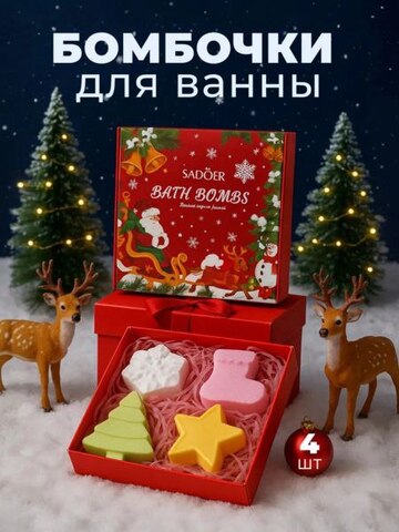 Новогодний набор бомбочек для ванны Sadoer, 4 штуки по 100 гр.