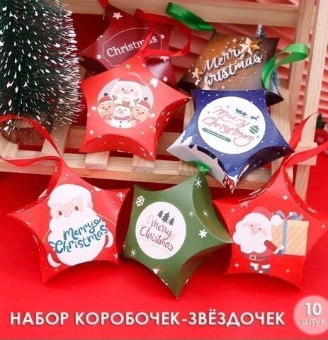 Набор из 10 подарочных складных коробок "ЗВЁЗДОЧКИ" с лентами. Размер: 12*12 см.