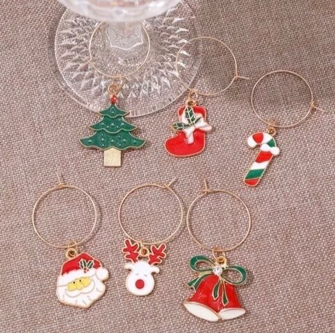 Маркеры для бокалов с подвесками "Новогодние фигурки", набор 6 штук. Металлические