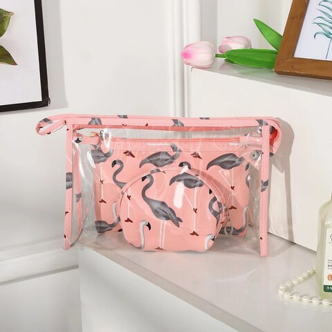 Набор косметичек 3 в 1 "Фламинго". Цвет: КРАСНЫЙ