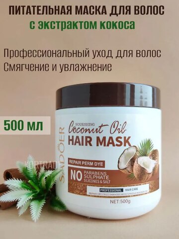 Питательная маска для волос с маслом кокоса SADOER, 500 гр.
