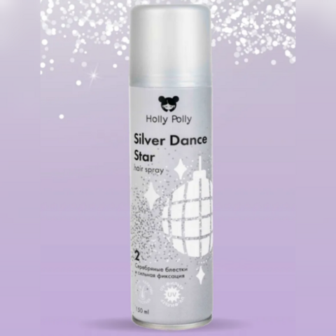 Лак для волос Holly Polly Silver Dance Star сильной фиксации с серебряными блестками,150мл