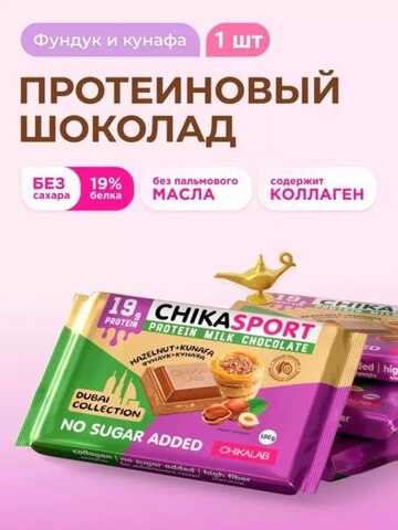 Шоколад "CHIKALAB" молочный с фундучной пастой и хрустящим тестом 100 г