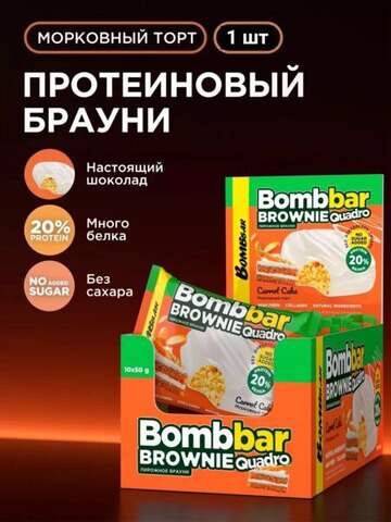 ТМ "BOMBBAR" Печенье глазированное "Брауни Морковный торт" 50 г