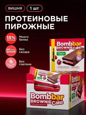 Bombbar Протеиновое печенье Брауни без сахара и глютена Вишня, 45г