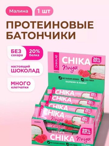 CHIKALAB Chika Nuga Протеиновые батончики Нуга в шоколаде без сахара "Малина", 50г