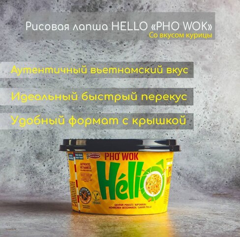 Лапша быстрого приготовления Hello "Фо Вок" со вкусом курицы ACECOOK, 76г (контейнер)