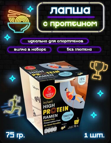 Лапша "Тонкоцу" с высоким содержанием протеина Happy Noodle, стакан 70 г
