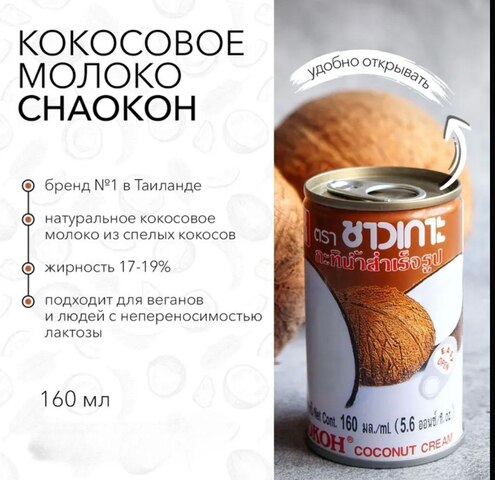 Кокосовое молоко CHAOKOH, 160 мл, ж/б, ВЕГ EASY OPEN