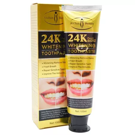 Aichun Beauty. Отбеливающая зубная паста с биозолотом, 24K Pure Gold Whitening Toothpaste, 100г.