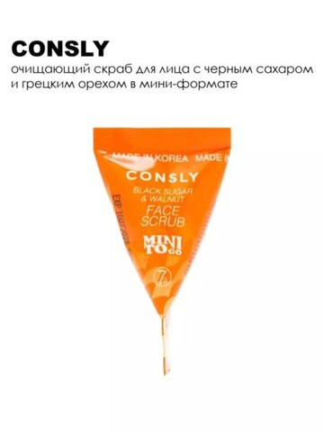 Consly Скраб для лица с черным сахаром и грецким орехом, 7 г.