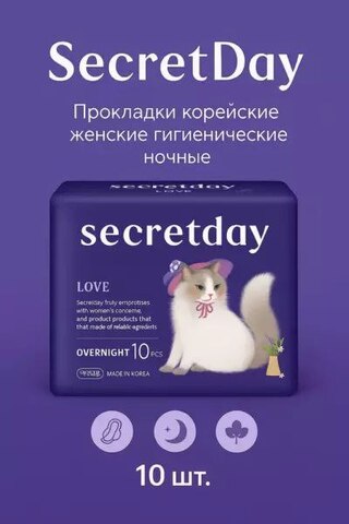 SecretDay Прокладки женские гигиенические LOVE, Overnight, 10 шт