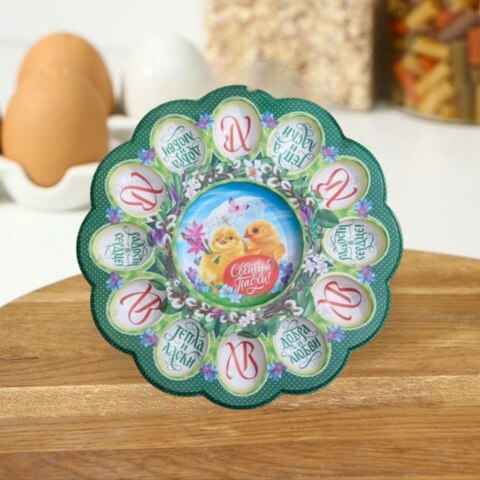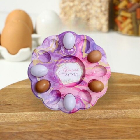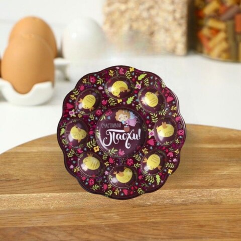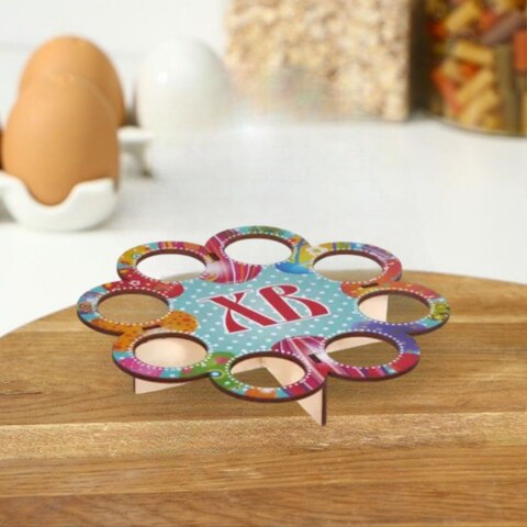Подставка пасхальная на 8 яиц и кулич Счастливой Пасхи 24см