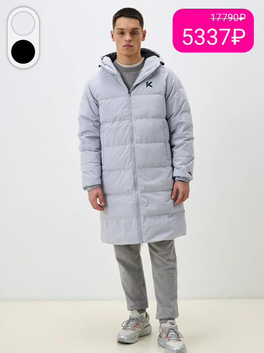 тёплую взрослую одежду — пуховики и утеплённые кроссовки.