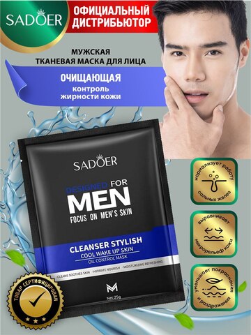 Мужская тканевая маска для лица "Очищение и увлажнение" Sadoer