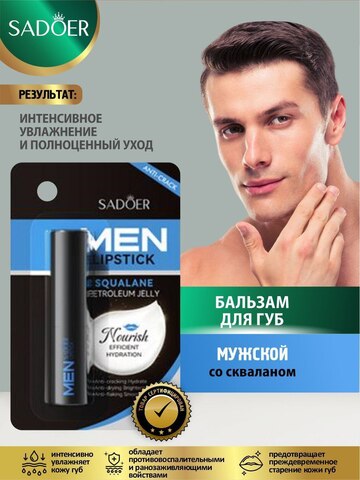 Увлажняющий мужской бальзам для губ без блеска Sadoer, 2,7 гр.