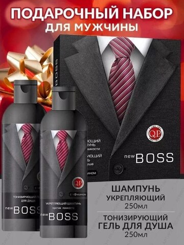 Q.P. New Boss Подарочный Набор №1114 (шампунь укрепляющий + гель для душа тонизирующий)