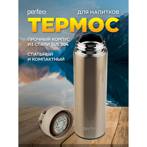 Термос PERFEO 0,35л, с крышкой-поилкой, золото