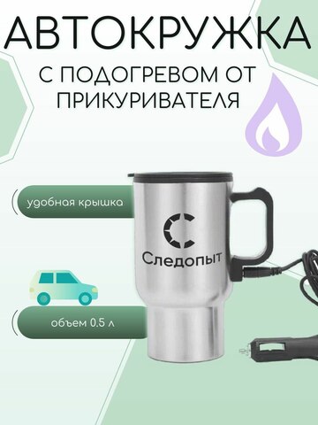 Автокружка Следопыт с подогревом от прикуривателя, металл. колба