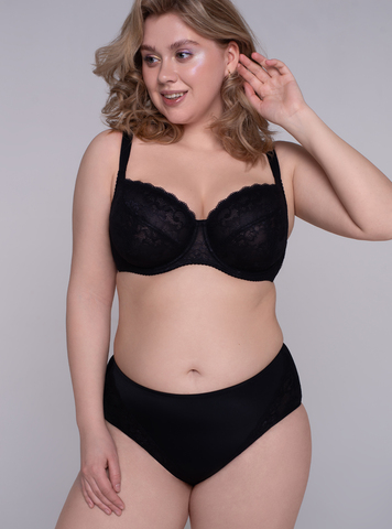 Бюстгальтер с мягкой чашкой на каркасах выполнен из эластичного кружева и сетки