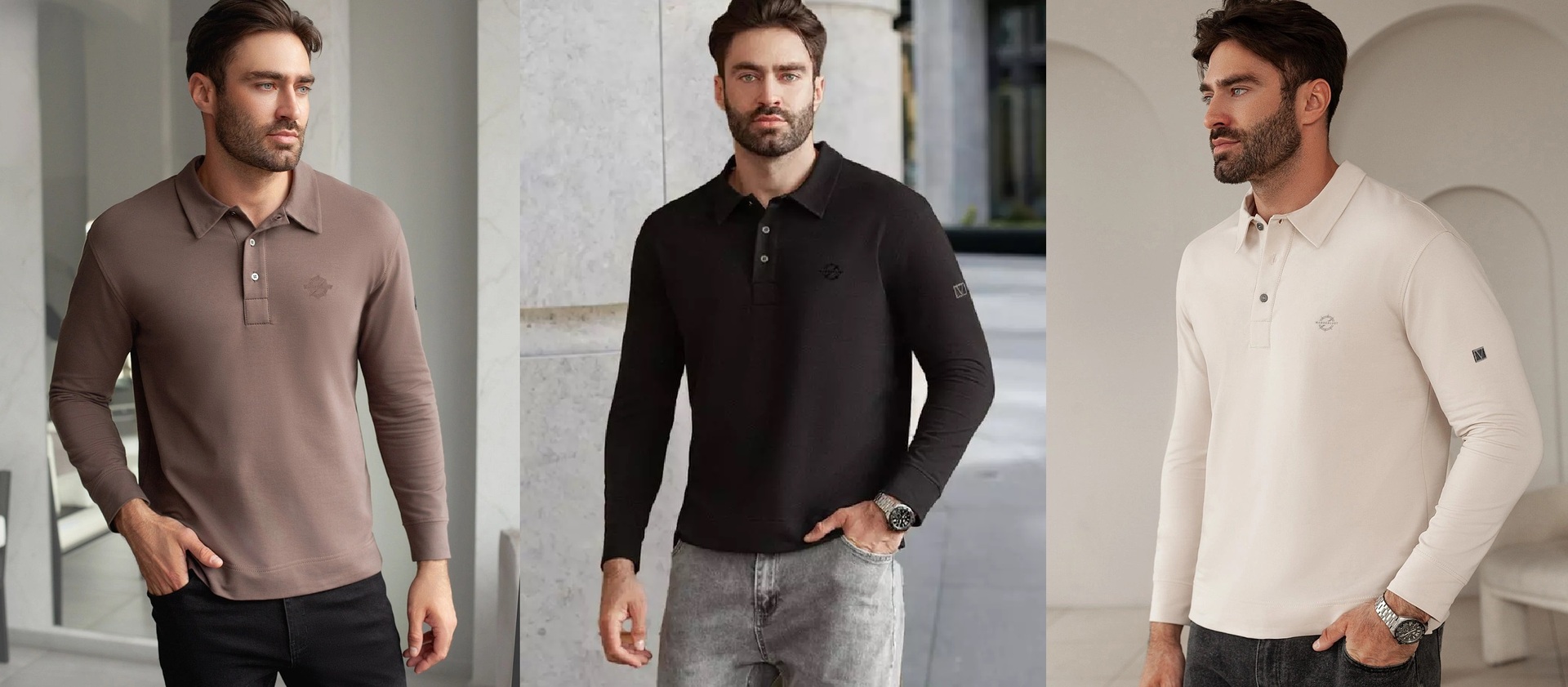 Лонгслив с воротником поло на пуговицах