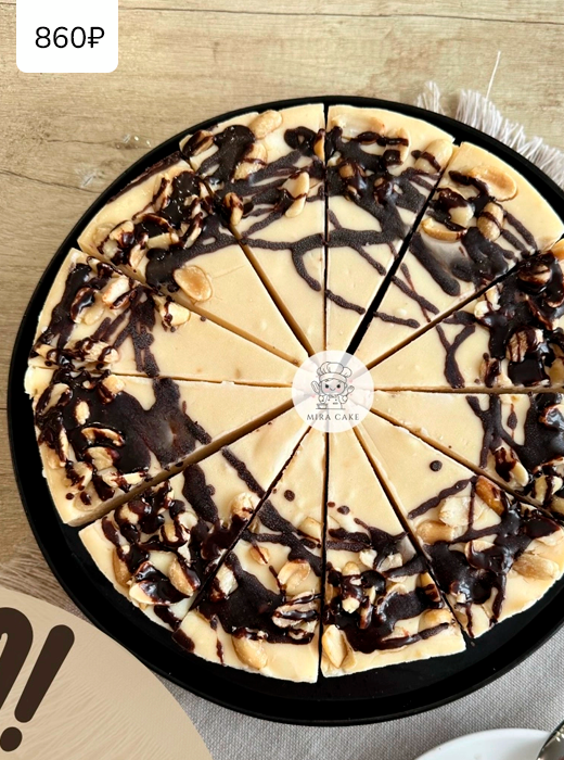 Сырная основа с добавлением арахисовой пасты, украшен цельным арахисом и шоколадом