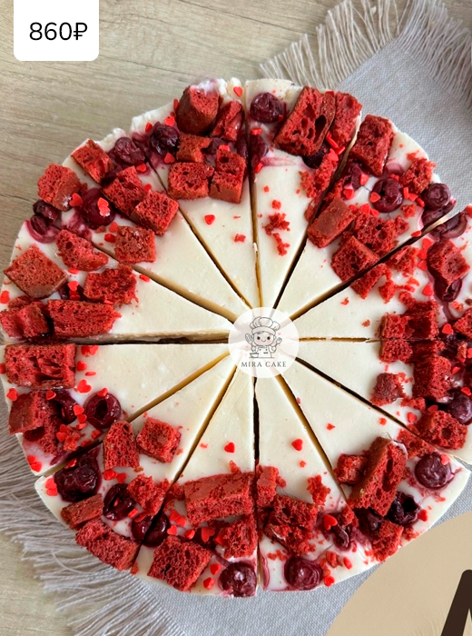 Классический ванильный чизкейк в сочетание с бисквитом красный бархат и кислинкой вишни