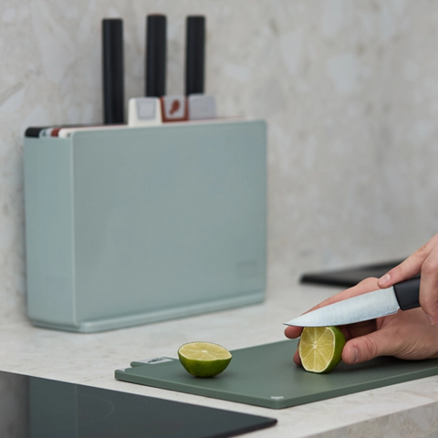 Набор из 4-х разделочных досок и 4-х ножей с держателем Cut&Store