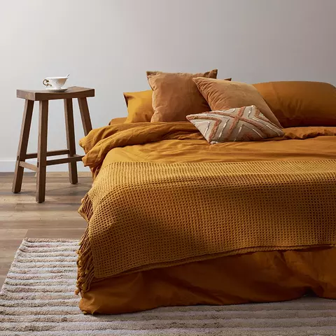 Комплект постельного белья изо льна и хлопка цвета карри из коллекции Essential, 200х220 см