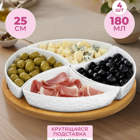 Набор из 4-х сервировочных тарелок на деревянном подносе Sorrento