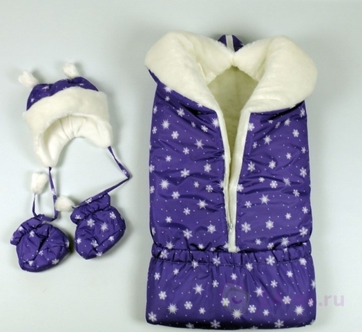 Одеяло-конверт+ меховая шапка + утепленные пинетки Фиолетовый 800Р