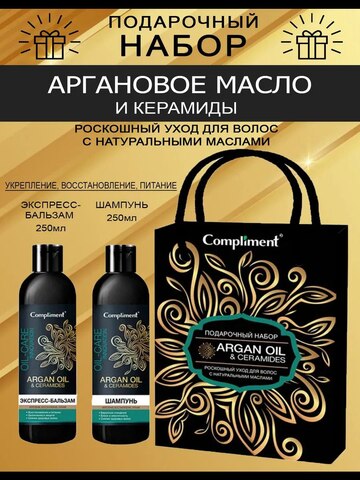 Compliment ARGAN OIL & CERAMIDES ПН №1242-2 Роскошь натурального ухода (Шампунь для волос, 250мл + Экспресс-бальзам для волос, 250мл)