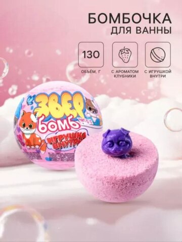 Лаборатория Катрин Детский бурлящий шар "Звер бомб" клубника (с игрушкой) 130г