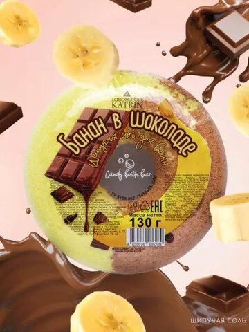 Лаборатория Катрин Шипучая соль для ванн Пончик Candy baht bar "Банан в шоколаде" 130 г