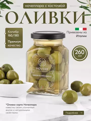 Оливки зелёные с косточкой Nocellara, 260 гр