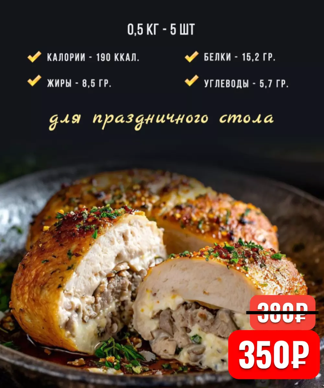 Куриные зразы с грибами и сыром 0,5 кг- 4 шт