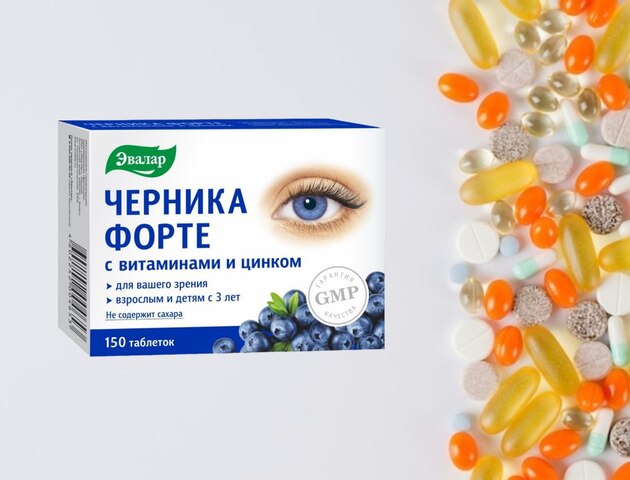 Черника-форте с витаминами и цинком, без сахара, таб. №150 по 0.25г (для зрения) Эвалар БАД