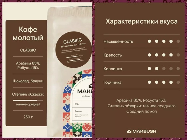 MakBush CLASSIC – это сбалансированный кофе с невысокой кислотностью