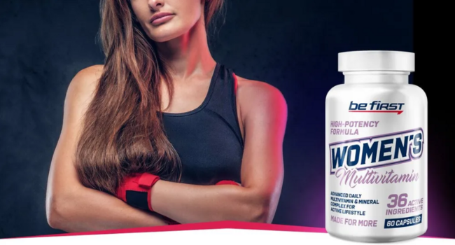 Комплекс витаминов для женщин Women`s Multivitamin от Be First заботится о женском здоровье, восполняя нехватку самых критичных витаминов и микроэлементов, и, таким способом, исправляя нарушения в процессах обмена веществ. Добавка позволяет поддержать силы и сохранить максимум энергии для самых важных дел, укрепить иммунитет и быстрее добиваться успеха в спорте, работе и личной жизни