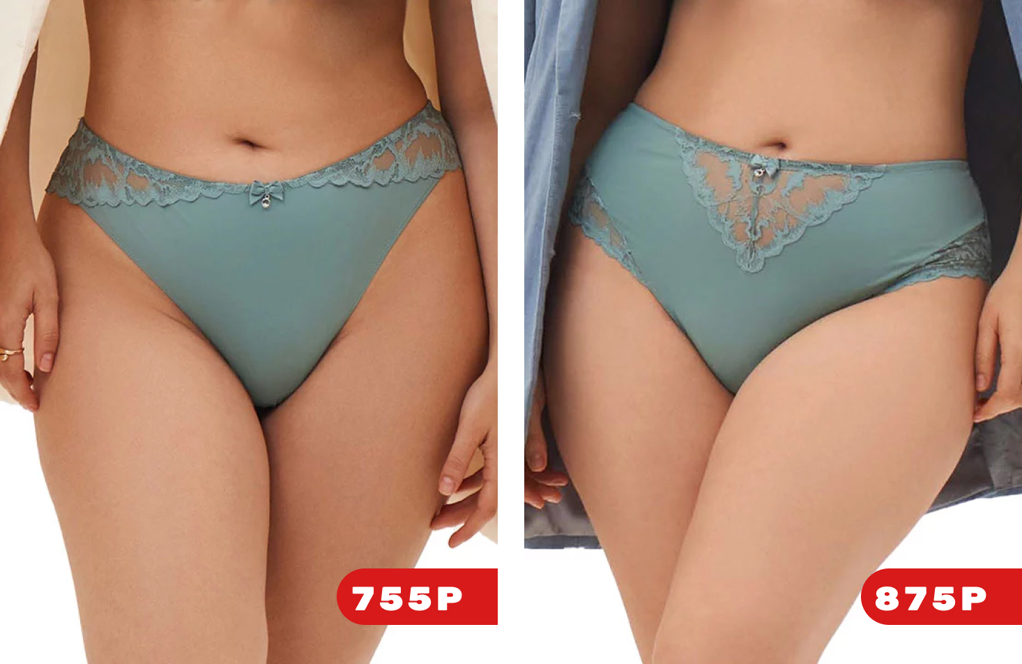 Кружевные трусики с высокой талией рисуют цветочный орнамент на коже в тренде plantopia и мягко обволакивают бедра.