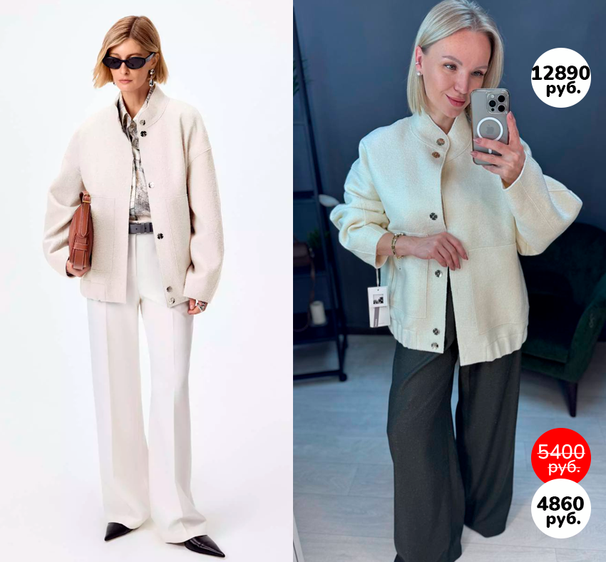 Сегодня повторно покажу вам хитовую куртку- бомбер- пальто от Помпа, но уже в молочном цвете!