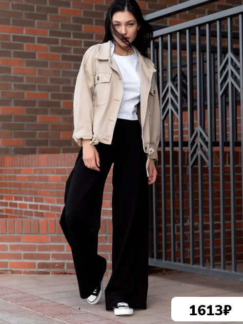 “Заказывала такие брючки в бежевом цвете, очень классные, на свой 44 взяла 42, так как читала что большемерят, в талии как раз хорошо сели, не хотела чтобы сильно свободные были, в бёдрах сели как на модели, свободно.”