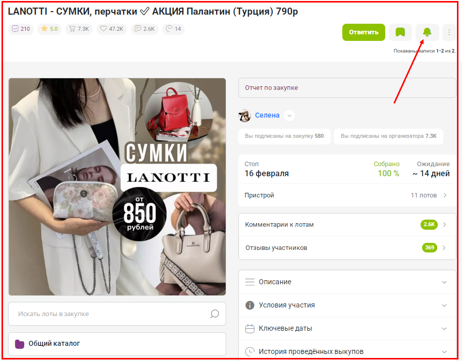 подписчикам новостей организатора Селена, подписчикам новостей закупки " LANOTTI", подписчикам новостей закупки "Pola - сумки известного качества", подписчикам новостей закупки "www.dakotacom", подписчикам новостей закупки "Зонты".