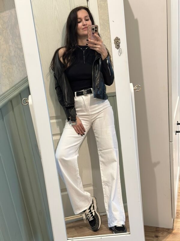 Стильный белый, добавлю сюда свое фото, но их много в лоте, хорошо тянутся классные, свободны 34,36,38